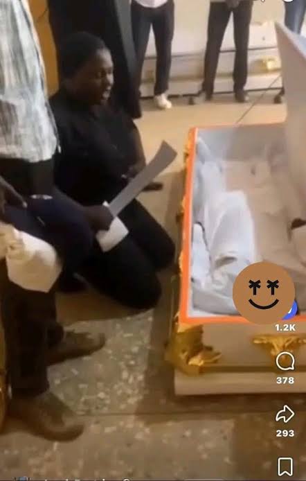 The heart-wrenching video, which went viral on Friday, shows Mrs. Ayuba speaking in an emotion-laden voice as she leans over her son’s casket during burial preparations.